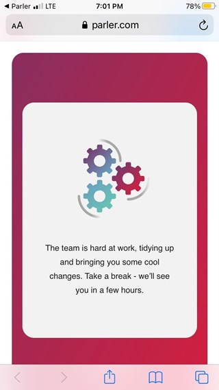 Những người dùng đang cố gắng truy cập trang web Parler sẽ nhận được thông báo cho biết rằng “nhóm làm việc chăm chỉ, thu dọn và mang đến cho bạn một số thay đổi thú vị…”