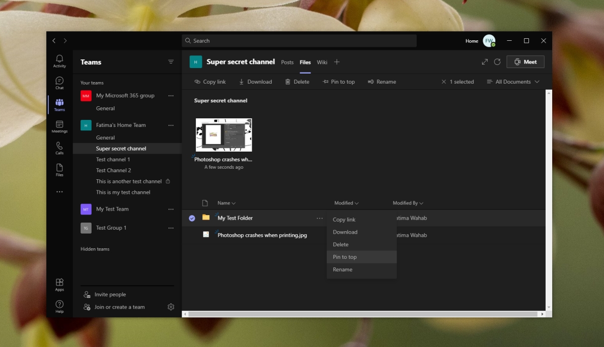- Chuyển đến nhóm và kênh mà bạn muốn ghim tệp hoặc thư mục vào.
