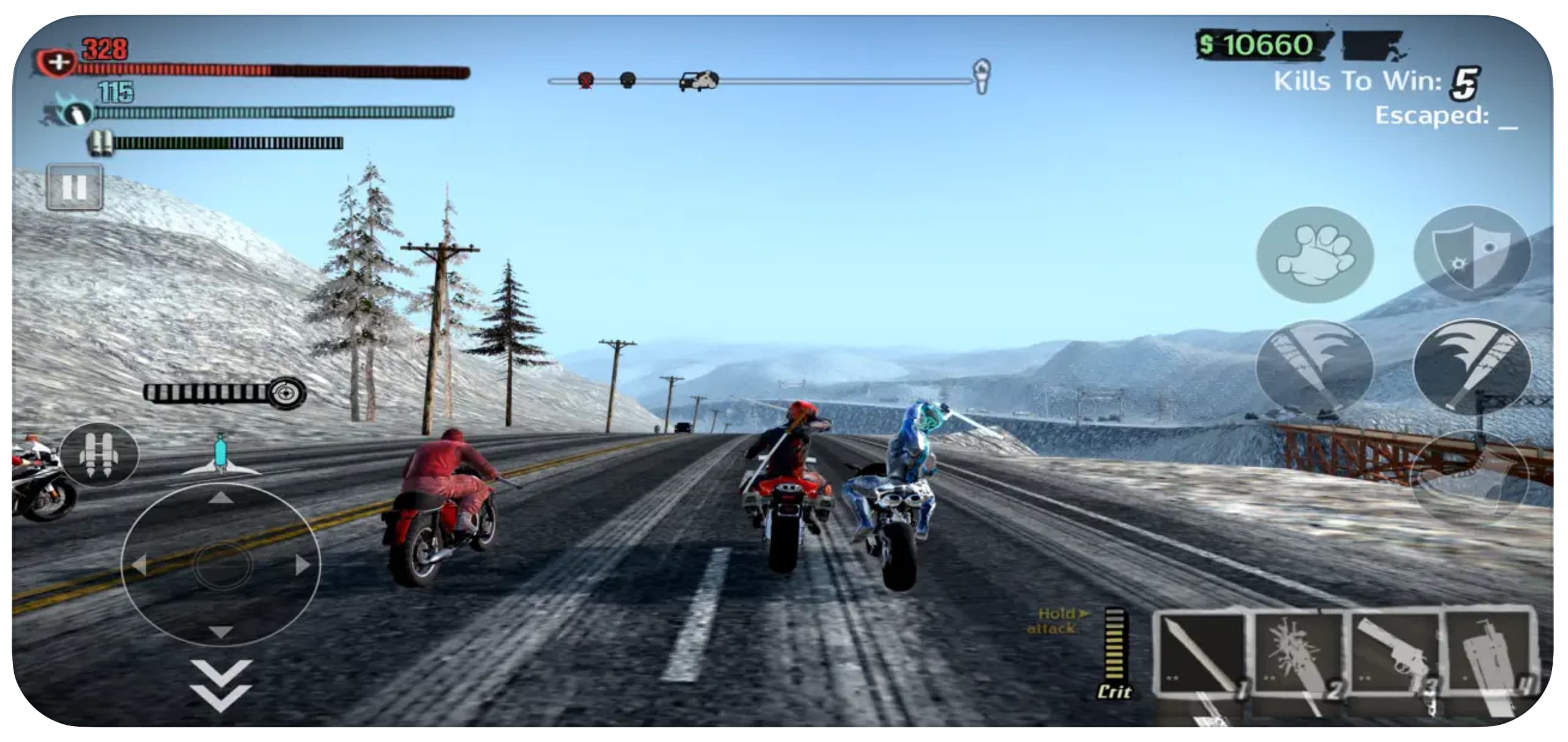Road Redemption là một trò chơi đua xe hành động lấy bối cảnh thế giới hậu tận thế được cai trị bởi một nhà độc tài tàn nhẫn. Nghĩ rằng Mad Max gặp Road Rash. Các tính năng bao gồm một hệ thống chiến đấu mô tô sâu với gắp và bộ đếm, nhân vật có thể mở khóa và nâng cấp, xe đạp và vũ khí, v.v. Không có giao dịch bổ sung hoặc vi mô, chỉ cần một IAP duy nhất để mở khóa toàn bộ trò chơi sau khi bạn đã chơi thử. Trò chơi PC phổ biến đã có mặt trên thiết bị di động!