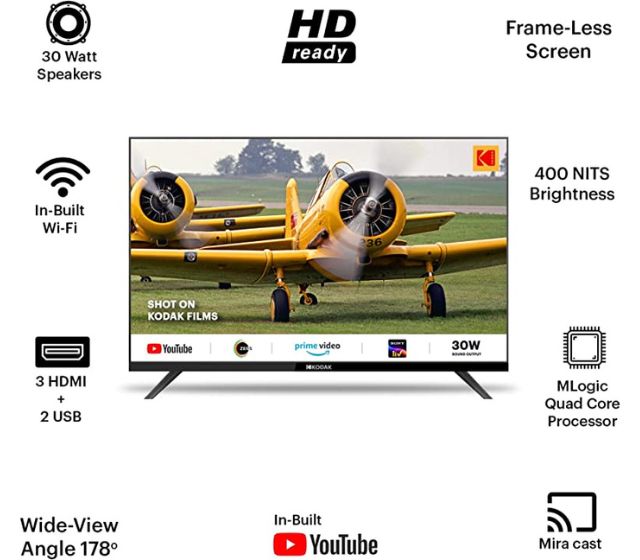 Có thể vận hành TV thông minh bằng điều khiển từ xa thông minh chuyên dụng với các phím nóng tích hợp và nút YouTube chuyên dụng . Hai pin kiềm được cung cấp để giúp bạn khởi động và chạy. Dòng Kodak SE chỉ có màu Đen.