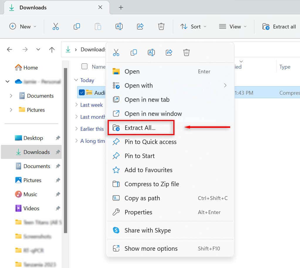 Truy cập tệp đã tải xuống của bạn và nhấp chuột phải vào thư mục ZIP. Chọn Trích xuất tất cả.