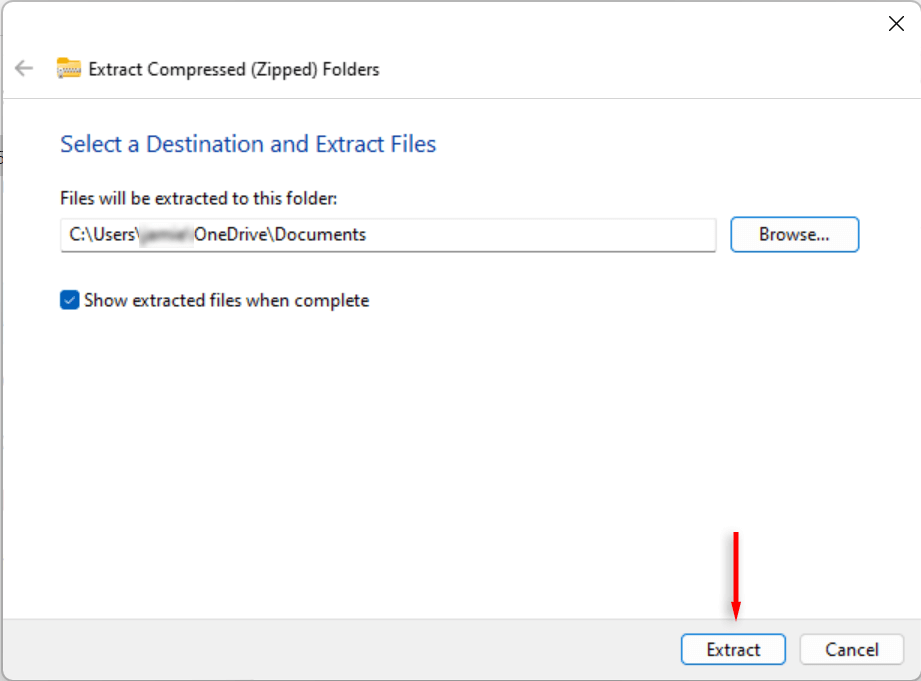 Chọn nơi bạn muốn giải nén các tập tin của mình và chọn Giải nén.