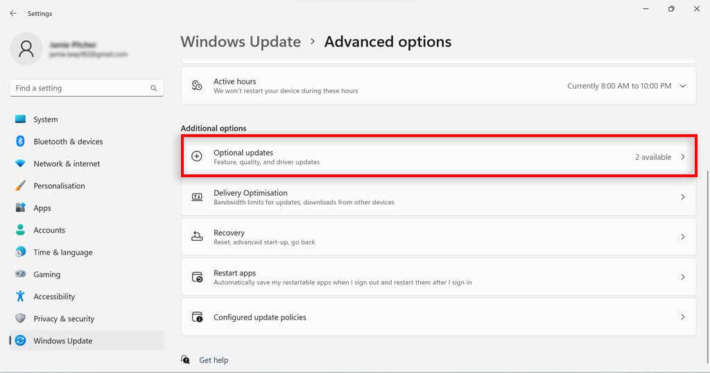 Để cập nhật trình điều khiển của bạn thông qua bản cập nhật Windows: