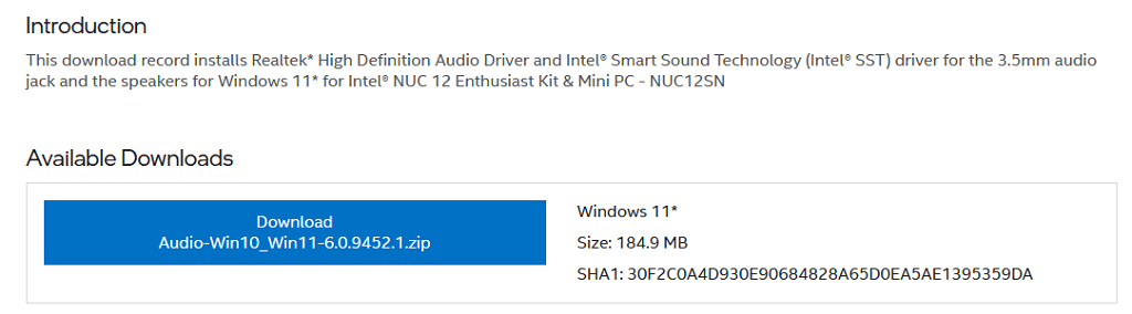 Truy cập Trang tải xuống trình điều khiển Realtek Audio trên trang web chính thức của Intel. Chọn nút Tải xuống.