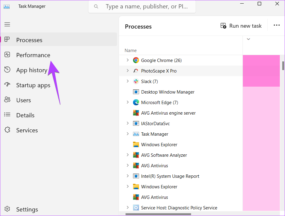 Bước 2: Trong Trình quản lý tác vụ, chuyển đến Hiệu suất từ thanh bên trái.
