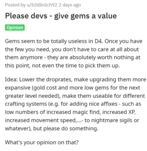 Người chơi Diablo 4 yêu cầu’thẻ hoặc túi đá quý chuyên dụng’