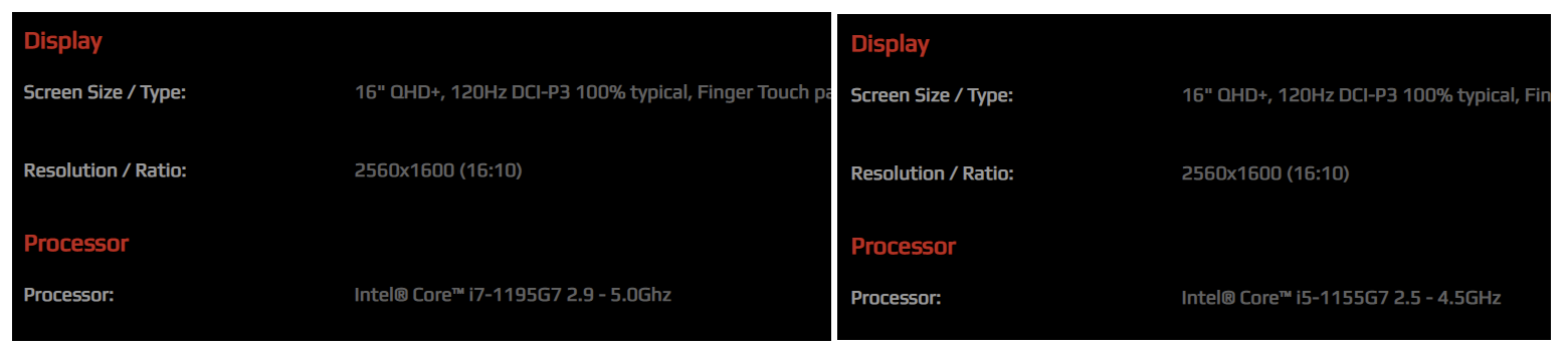 Trang web đã tiết lộ thông số kỹ thuật của cả hai SKU TGL-R. Core i7-1195G7 sẽ có xung nhịp cơ bản là 2,9 GHz và tăng lên đến 5,0 GHz. Đây là CPU Tiger Lake công suất thấp đầu tiên đạt được tần số này. Điều đáng chú ý là người dùng Twitter @davidbepo đã dự đoán chính xác thông tin này, trái với những rò rỉ và báo cáo trước đó đề xuất mức tăng 4,8 GHz xung nhịp.