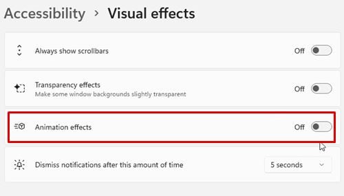 Bước 5. Tiếp theo, tắt tùy chọn ‘Hiệu ứng hoạt ảnh’.