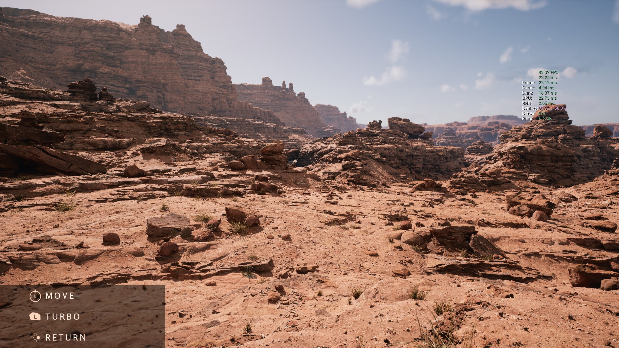- Hiển thị mỗi khung hình 4K được hiển thị ở độ phân giải 1080p (r.ScreenPercentage=50): 43,0 khung hình/giây
