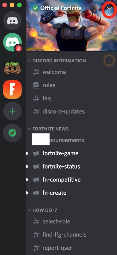 - Mở trình đơn thả xuống trên thanh bên của máy chủ ở bên trái. Trên máy tính để bàn, nó xuất hiện dưới dạng một mũi tên thả xuống và trên thiết bị di động, nó là ba chấm dọc hoặc một dấu chấm lửng.
