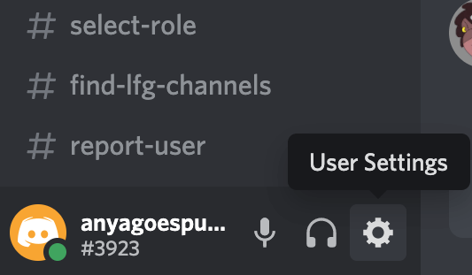 - Chọn Cài đặt người dùng nằm bên cạnh tên người dùng của bạn ở cuối ứng dụng. Trên thiết bị di động, đó là biểu tượng nằm ở góc dưới cùng bên phải của màn hình.